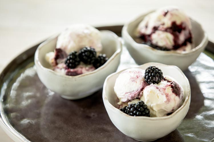Balsamic ice cream recipes abound. The first time I heard of it, I though it was strictly an Italian oddity. A friend returned from Florence, raving about the balsamic reduction poured over plain vanilla gelato. After that, I cooked some balsamic vinegar down into a syrup to see how it worked. It became sweet enough to pour on pancakes. Try it with Balsamic Blackberry Ice Cream and then top with fresh, tree-ripened peaches for a delicious flavor combination.