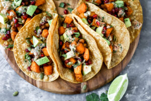Butternut Squash Tacos with Pumpkin Seeds, Pomegranate and Avocado