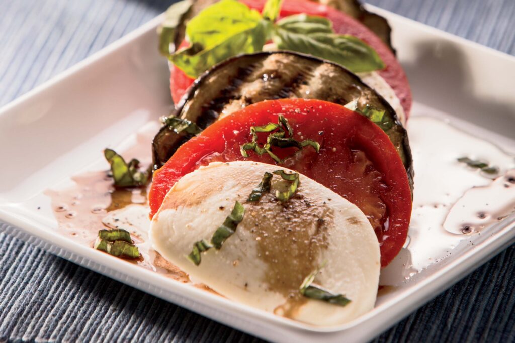 Enjoy the traditional tastes of Caprese salad but this time with added flavor and yummy grilled eggplant.