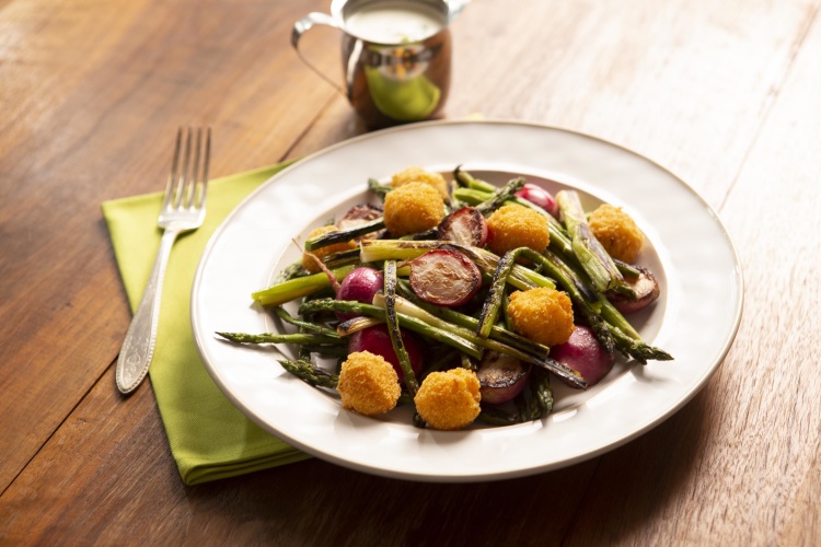 Fresh spring veggies are even more flavorful when charred with a cool, creamy dressing.