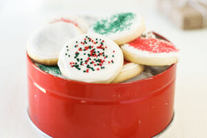 A tin of Holiday Toffee makes a fun and festive gift for friends and family. This quick and easy recipe is loaded with chopped pecans, chocolate and red and green holiday sprinkles for an extra touch of Christmas cheer.