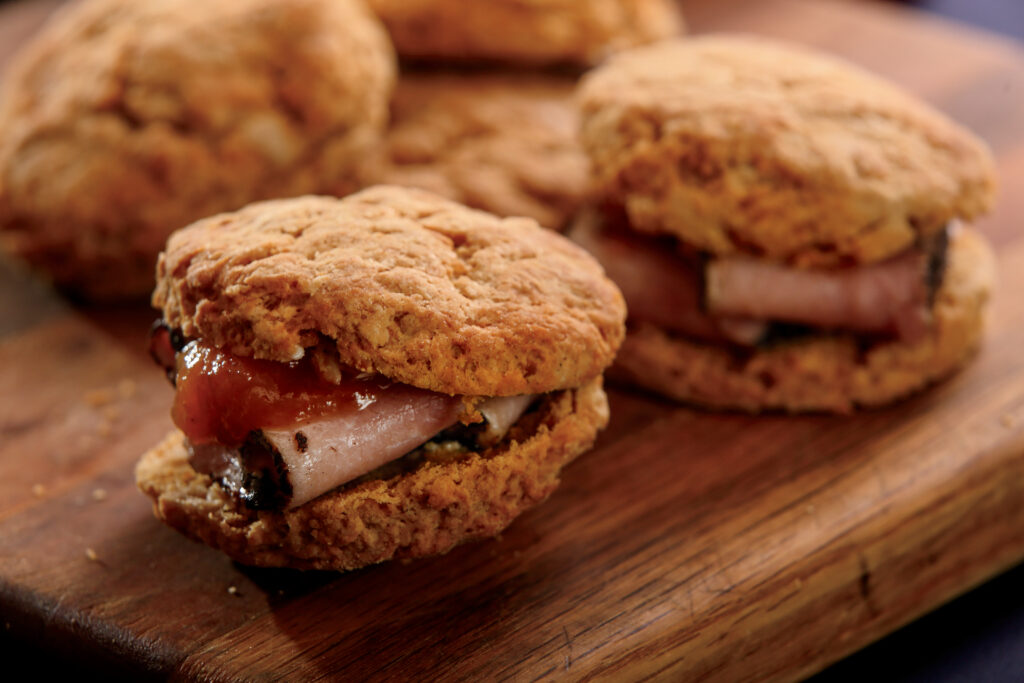 Sweetpotato Biscuits with Ham & Pepper Jelly