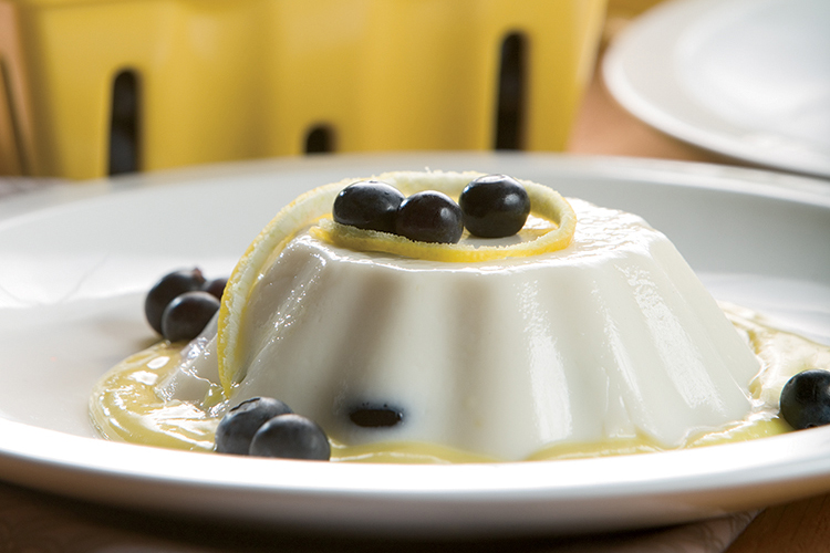 Panna cotta, Italian for “cooked cream,” is so easy to make, but all of that cream is a bit heavy on a summer day. The Blueberry Panna Cotta recipe provided here reduces the cream from three cups to one cup and adds tangy low-fat buttermilk.