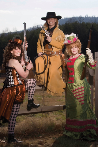 But the three aren’t just admired for their dazzling style. They’re also recognized for their shooting. Whether toting revolvers, shotguns or rifles, the trio is fast and accurate, hitting such heavy-steel targets as hearts, diamonds, circles, bulls, bears, chickens and tombstones. Occasionally, they’ve captured area competitions.