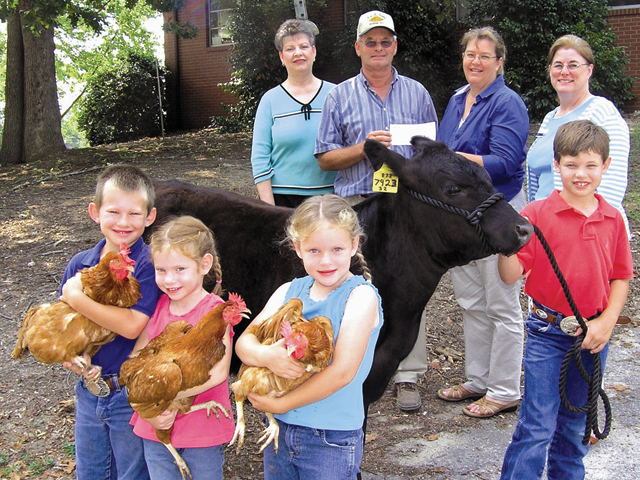 Top row, from left, Farm Bureau’s Kay Sims was on hand as Franklin County Farm Bureau’s Vice-President Steve Nelms presented a contribution on behalf of Farm Bureau and United Way to event planner Martha Mobley. United Way’s Priscilla Henderson is pictured far right. On hand for the check presentation were the children of Farm Bureau members Alyssa and Matthew Dorsey, who operate Bahemah Angus Farm in Louisburg. They are, from left, Micah, Leah, Anna and Silas.