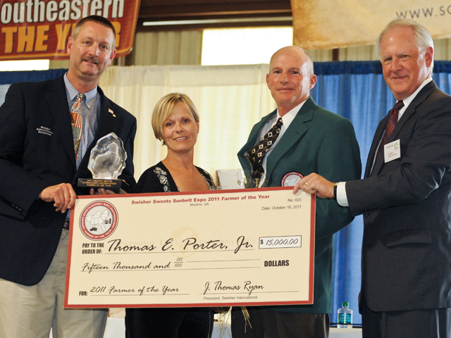 CABARRUS COUNTY Farm Bureau member Thomas Porter Jr. has been selected as the 2011 Swisher Sweets/Sunbelt Expo Southeastern Farmer of the Year. A successful livestock farmer, Porter raises poultry, hogs and beef cattle. The Farmer of the Year award recognizes excellence in agricultural production and management, along with leadership in community and farm organizations. The award also honors family contributions in producing safe and abundant supplies of food, fiber and shelter products for U.S. consumers.