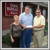 BEAUFORT COUNTY Farm Bureau President Mac Daniels, right, presents a check for $500 to Emily Albera, co-chair of the Washington/Beaufort County Alzheimer’s Walk Steering committee, and supporter Brett Perry. The money will go toward the Alzheimer’s Walk and Education Fair Oct. 6 at the Redmen’s Lodge.