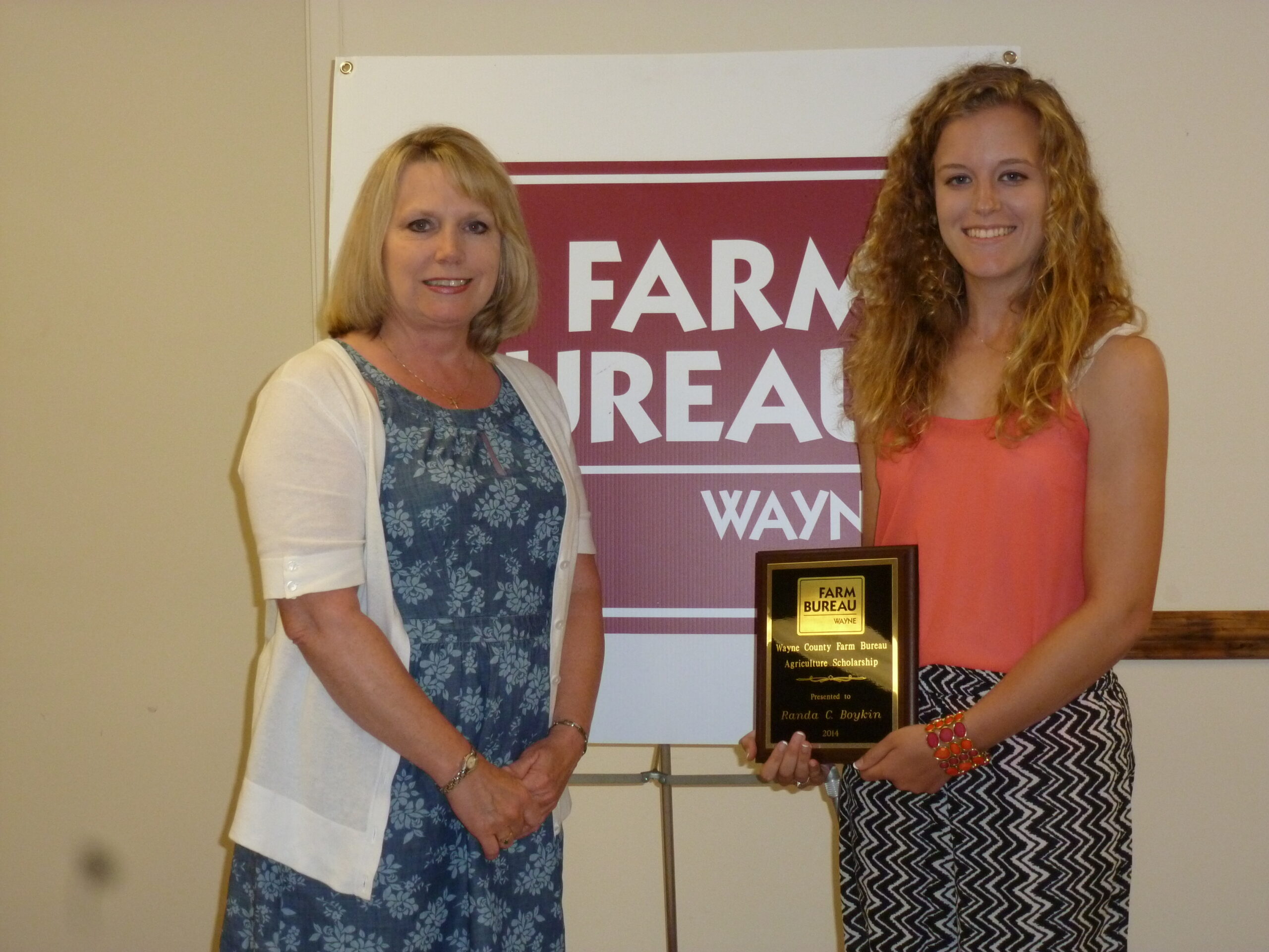 Wayne County Farm Bureau has presented three local high school students with $1000 scholarships each to pursue degrees in agriculture at N.C. State and University of Mount Olive. Winners are Randa Boykin (above), Alec Litton and Ashlyn Spell (both below). Each is pictured with Joanne Williams, Women’s Committee Chair for Wayne Co Farm Bureau.