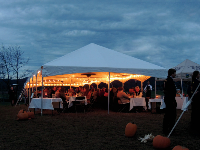 Blurs of blue and gold corduroy jackets darted around a hilltop on Nov. 7, 2015, at a picturesque farm setting overlooking the French Broad River Valley. Those jackets were worn by FFA members from both Brevard and Rosman FFA chapters who greeted, served, and cleaned up for 100 guests who sat down to a gourmet, four-course dinner prepared by Wild Indigo Catering. The entire menu comprised of locally sourced North Carolina products, from Pitch Pine Farm’s vegetables to BusyBee Farm’s sirloin steaks to smoked Sunburst Trout. The event was designed as a fundraiser to benefit the high school agriculture education programs in Transylvania County that strive to develop student leadership, personal growth and career success through hands-on learning, classroom instruction, and FFA participation.