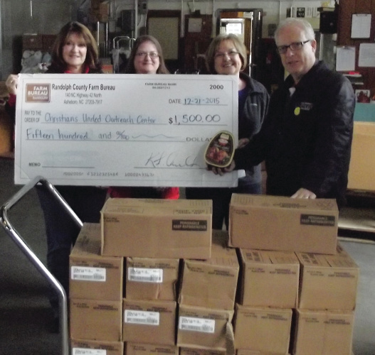 In the spirit of the holiday season, Randolph County Farm Bureau’s Board of Directors collected 348 food items for a local food pantry in late 2015. The Women’s Committee also donated 100 canned hams to the food pantry as part of their annual Christmas community service project. In addition to the food pantry donation, the committee gave $1,500 to the Christians United Outreach Center to help those needing assistance with heating bills over the winter months.