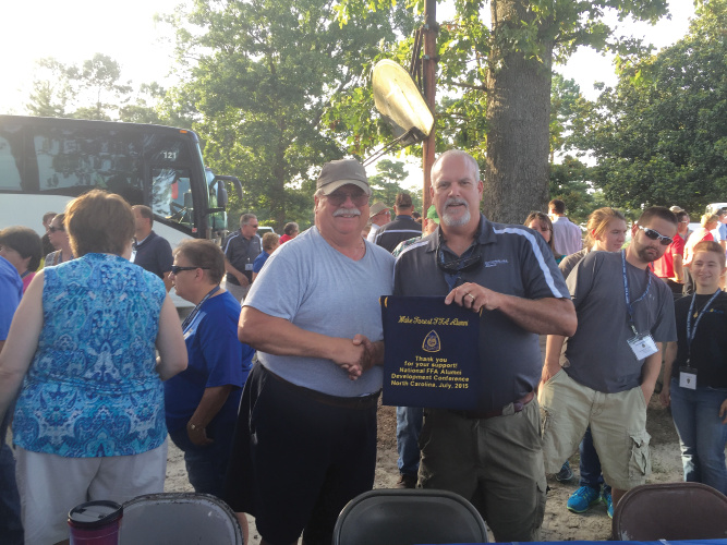 Members of National FFA Alumni from across the country visited North Carolina for their annual development conference. Wake County Farm Bureau President Jackie Thompson hosted 125 alumni members at his home for dinner and a tour of his tobacco operation in northern Wake County. Wake County Farm Bureau and directors Jackie Thompson, Ronnie Perry and Fred Burt sponsored the meal.