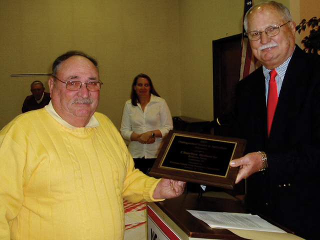 ROBESON COUNTY Farm Bureau Vice President Charles Roberts was recently given the Robeson County Crop Promotion Association’s Distinguished Service to Agriculture Award. Roberts serves on NCFB’s Field Crops Committee and is active in local and state Farm Bureau activities. He is also a member of Cooperative Extension’s Field Crops Advisory Committee and has helped conduct more than 35 demonstration and research plots on his farm. As a board member and Livestock Exhibits Committee member of the Robeson Regional Agricultural Fair, he has helped coordinate barnyard tours to “Mr. Webb’s Farm,” an exhibit where children perform real farm tasks.