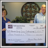 4-H agent Meg Wyatt, left, accepts a $5,000 check from FRANKLIN COUNTY Farm Bureau President Bennie Ray Gupton, on behalf of Franklin County Farm Bureau.