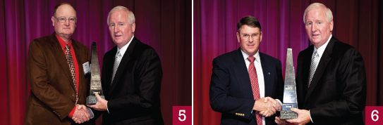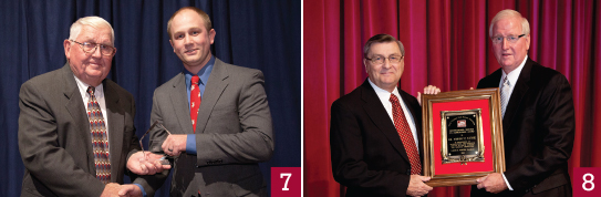 8) Distinguished Service Award— Former N.C. State University College of Agriculture and Life Sciences Dean Johnny C. Wynne (left) accepts the award from NCFB President Larry Wooten.