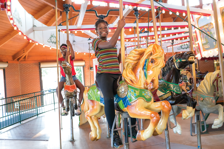 One of the few historic carrousels in the country that’s open year round, Shelby’s City Park Carrousel celebrated its 100th anniversary in 2019. It features 32 horses, 28 hand-painted scenery panels and a working band organ providing music for rides, which cost a mere 50 cents each. In the same area as the carrousel, kids can also climb aboard the Shelby Rotary Train, a miniature engine with a tunnel and track that was restored in 2000 (that also costs 50 cents a ride!).
